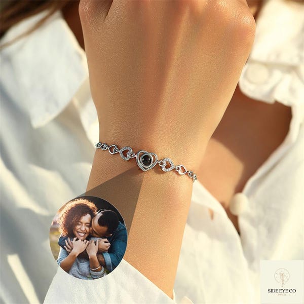 Wow, was für eine geniale Idee! Dieses besondere Armband projiziert dein Lieblingsfoto an die Wand - einfach unglaublich! Du schickst uns dein Foto und wir gravieren es in den Projektionsstein. Wenn Licht darauf fällt, siehst du das Bild ganz klar. Das Armband ist 17-26 cm lang und passt damit den meisten Menschen. Der Stein hat 10 mm Durchmesser - diskret aber wirkungsvoll. Perfekt als Geschenk für Partner, Familie oder Freunde! Ob zum Geburtstag, Jahrestag oder Valentinstag - dieses persönliche Armband berührt garantiert jedes Herz. Einfach Armband umlegen, Licht drauf - und schon teilst du deine schönsten Erinnerungen. Viel mehr als nur Schmuck - das ist Liebe zum Anfassen!
