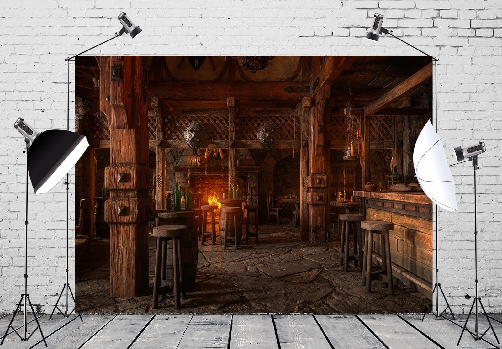 Reise ins Mittelalter! Dieser 3x2m große Fotohintergrund aus Polyester zeigt eine gemütliche Taverne mit Holzvertäfelung, Kamin und Kerzenlicht. Perfekt für mittelalterliche Fotosessions, Mottopartys oder als Deko für Events. Die lebendigen Farben und hohe Auflösung sorgen für realistische Aufnahmen. Leicht und platzsparend - einfach bügeln oder dämpfen um Falten zu entfernen. Ideal für YouTube-Videos, TikTok, Geburtstage oder Hochzeiten im Mittelalter-Stil. Hol dir die perfekte Kulisse für deine nächste Foto-Session!