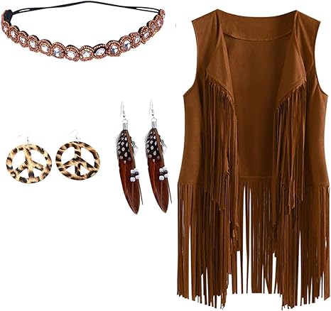 Cowgirl Weste Damen Mit Fransen - Faux Wildleder Braun - Retro Hippie Kostüm