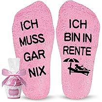 Perfekt für die wohlverdiente Rente! Dieses süße Geschenkset für Frauen besteht aus Jutebeutel (35x27x13cm) und flauschigen Socken. Auf dem Beutel steht 'Für Immer Feierabend', auf den Socken 'Ich bin in Rente, ich muss gar nix'. Universalgröße 37-42 passt fast jeder. Aus robustem Jute und weichem Polyester. Ideal für Kollegen, Freundinnen oder Familienmitglieder. Mach die Rente zu einem unvergesslichen Start in einen neuen Lebensabschnitt. Ein herzliches Geschenk mit Humor!