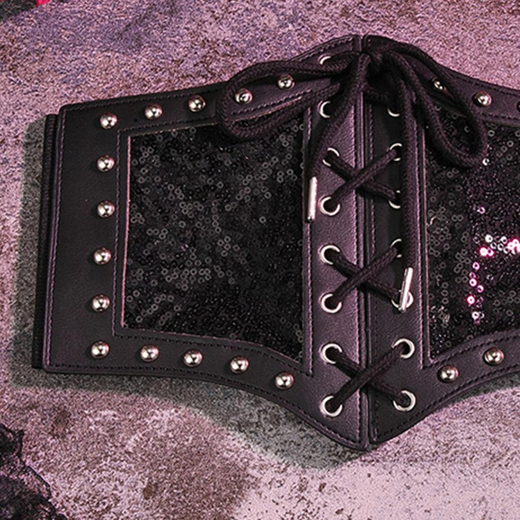 XPJYUA Kummerbund Frauen Leder - Elastisch 86-93cm Schwarz
