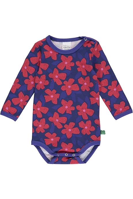 So süß! Dieser Langarm-Body für Baby-Mädchen ist einfach nur niedlich. Mit seinem zarten Blumen-Print und weicher Bio-Baumwolle ist er perfekt für zarte Babyhaut. GOTS zertifiziert - das bedeutet: 100% ökologisch und sozial verantwortlich produziert. Super weich, hautfreundlich und ohne schädliche Chemie. Perfekt als Unterwäsche oder einfach so zum Spielen. Der praktische Druckknopf-Verschluss an der Schulter macht das An- und Ausziehen super einfach. Ob zu Hause, im Kindergarten oder für unterwegs - dein kleiner Schatz fühlt sich pudelwohl und sieht bezaubernd aus. Ein Must-have für jede Baby-Garderobe!