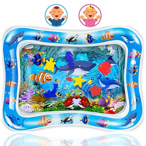 Spielspaß für die Kleinsten! Diese Baby-Wassermatte mit den Maßen 46x66cm ist perfekt für die Bauchzeit. BPA-frei und absolut sicher für dein Baby. Die bunten, schwimmenden Meerestiere stimulieren die Sinne und fördern die Entwicklung. Stärkt die Kopf-, Nacken- und Schultermuskulatur. Einfach mit Wasser füllen, aufblasen und schon kann der Spielspaß beginnen! Die Matte ist leicht mit einer Schwammbürste zu reinigen, um Schimmelbildung vorzubeugen. Aus hochwertigem, ungiftigem PVC, das auf Dichtheit geprüft wurde. Der Aquarium-Einfüllstutzen hat eine wasserdichte Dichtung für einfaches Befüllen. Nach dem Spielen einfach Wasser ablassen und platzsparend verstauen. Ideal für zu Hause oder unterwegs - ob im Garten, Park oder Wohnzimmer. Ein tolles Geschenk zur Babyparty, zum Geburtstag oder zu Weihnachten. Fördert spielerisch die Hand-Augen-Koordination und Feinmotorik. Dein Baby wird es lieben!
