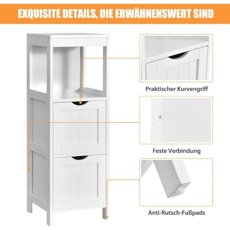 AOOUNGM Badezimmerschrank Freistehend - 3 Etagen, 20x20x80cm, Weiß, Platzsparend