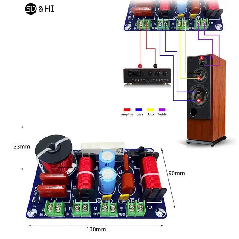 Upgrade dein Soundsystem! Diese 2 High-End 3-Wege Frequenzweichen bringen professionelle Klangqualität in deine Lautsprecher. Mit 250W Leistung und 4-8 Ohm Impedanz - perfekt für die meisten Audio-Setups! Die Übergangspunkte bei 850Hz (Tiefton/Mittelton) und 5200-550Hz (Hochton/Mittelton) sind umschaltbar für maximale Flexibilität. Hochwertige Komponenten mit in Reihe geschalteten Kondensatoren und Induktivitäten sorgen für kristallklaren Hochton. Die benutzerfreundlichen Klemmenanschlüsse machen die Installation lötdfrei und super einfach! Perfekt für HiFi-Stereo-Anlagen, Heimkino oder Auto-Sound-Systeme. Ob für DIY-Lautsprecherbau oder Aufrüstung bestehender Systeme - diese Frequenzweichen sind die professionelle Lösung! Einfach verdrahten, Frequenzen einstellen und den verbesserten Klang genießen! Hol dir dieses Set und erlebe Audio auf neuem Niveau!