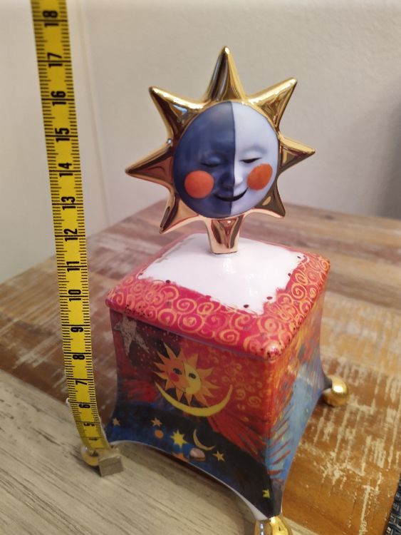 Eine bezaubernde Spieluhr für Musik- und Katzenliebhaber! Dieses Qualitäts-Spielwerk spielt Beethovens berühmte Melodie 'Für Elise'. Das Motiv zeigt eine niedliche Katze der Künstlerin Rosina Wachtmeister. Auf einem hölzernen Resonanzboden montiert für vollen Klang. Kommt in einer bunten Geschenkbox - perfekt zum Verschenken. Ein zeitloses Stück das Generationen begeistert. Ideal fürs Kinderzimmer, als Sammlerstück oder als besonderes Geschenk. Die Musikbox bringt Ruhe und Entspannung in dein Zuhause. Ein kleines Kunstwerk das durch Design und Klang überzeugt!