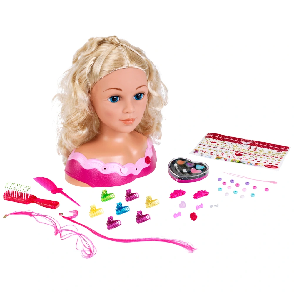 Für alle kleinen Beauty-Queens: Dieses riesige 58-teilige Frisierkopf Set ist der absolute Traum! Die süße Puppe mit ihrem langen, weichen Haar lässt sich super einfach frisieren - ob Zöpfe, Pferdeschwänze oder elegante Duts. Im Set ist alles dabei, was das Herz begehrt: Spiegel, Kamm, simulierter Föhn, Lockenstab, Haarschmuck und sogar eine komplette Schmink-Ausstattung mit Kosmetikpinseln, Blush, Lippenstift und Lidschatten. Das coole: Die wasserlösliche Schminke ist total hautfreundlich und lässt sich easy wieder abwaschen, ohne Flecken zu hinterlassen. So können die Kinder nicht nur die Puppe stylen, sondern auch sich selbst ausprobieren. Perfekt zur Förderung von Kreativität und Feinmotorik! Ein ideales Geschenk für Mädchen ab 3 Jahren. • 58 Teile im Set • Waschbarer Frisierkopf • Wasserlösliche Schminke • Inkl. Frisier- & Schminkzubehör • Ab 3 Jahren geeignet
