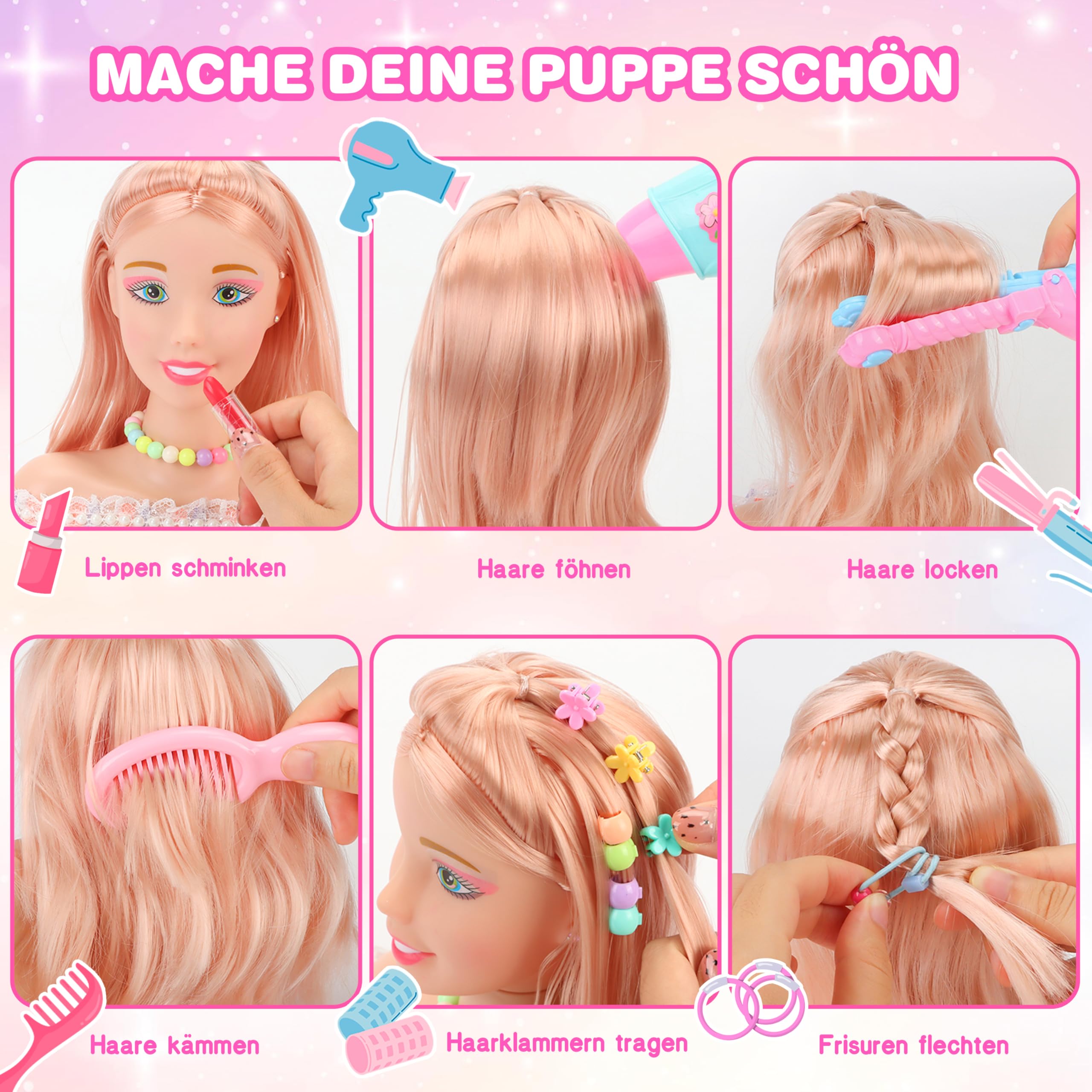 58-teiliges Frisierkopf Set Für Mädchen - Mit Schminke & Styling Zubehör