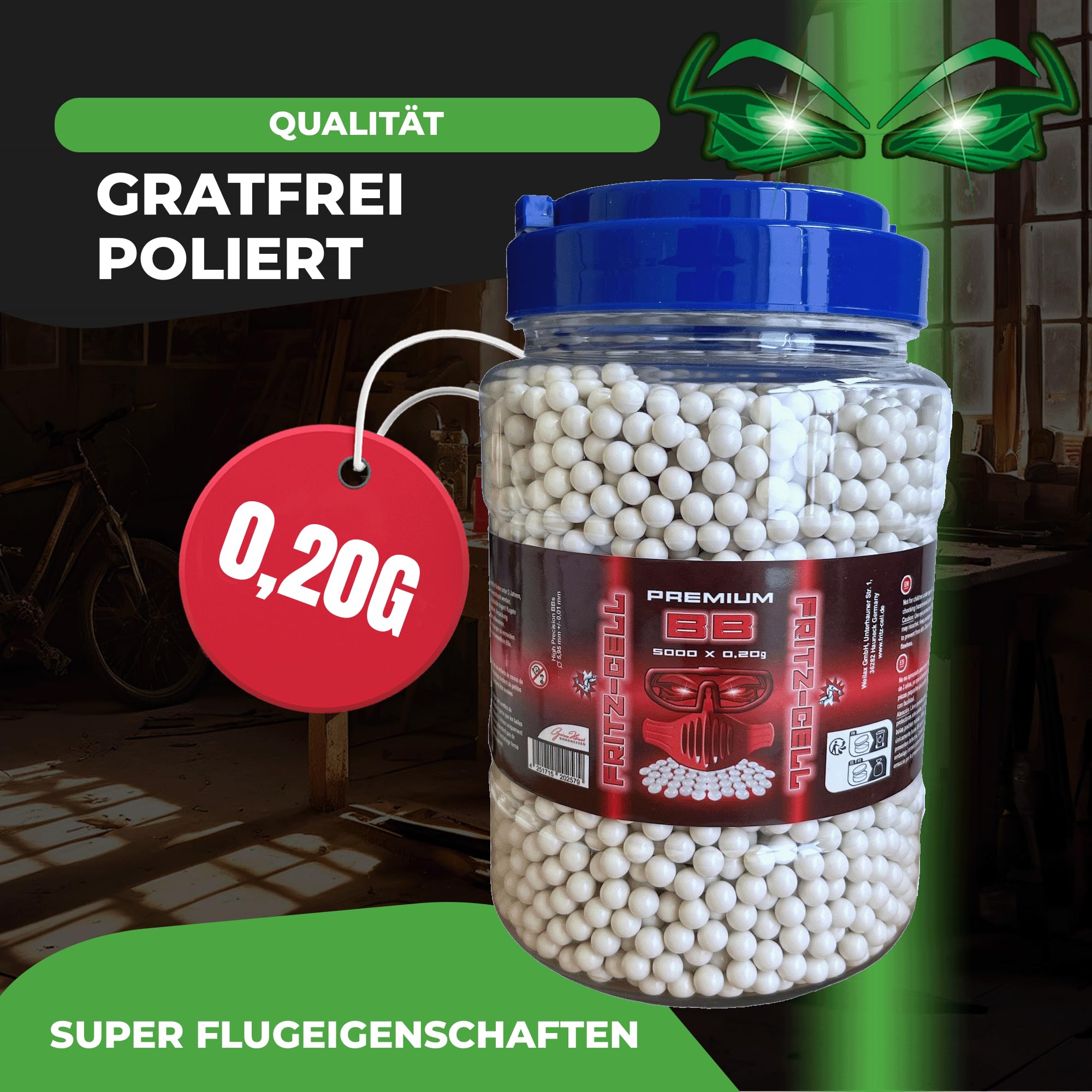 Perfektes Einsteiger-Set für Airsoft-Fans! Die Fritz-Cell Federdruck-Pistole hat 0,5 Joule Energie - ideal für Jugendliche ab 14 Jahren. Komplett ohne Akku oder CO2 - einfach spannen und schießen. Das Gehäuse ist kratzfest, der Schlitten aus Metall gibt ein realistisches Gefühl. Im Set enthalten: Pistole mit Magazin und 5000 Fritz-Cell Premium BBs in 6mm. Die Kugeln sind präzise poliert für ein sauberes Schussbild. Das griffige Griffstück liegt sicher in der Hand. Perfekt für Training im Garten oder für Airsoft-Spiele mit Freunden. Einfach zu handhaben und sicher im Gebrauch. Ob für Einsteiger oder als Zweitwaffe - dieses Set bietet alles was du für den Airsoft-Spaß brauchst!