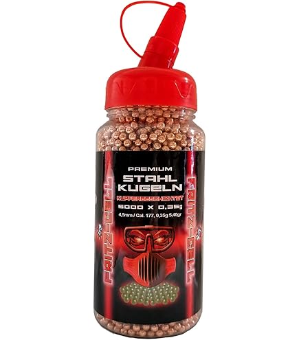 Hochwertige Munition für deine Luftpistole! 4 Dosen mit je 5000 Stahlkugeln im Kaliber 4,5mm (.177). Zinkbeschichtet für optimale Gleiteigenschaften und Korrosionsschutz. Gewicht pro BB: 0,35g / 5,40gr. Mit praktischer Schnellladeflasche für einfaches Nachladen. Hervorragende Flugeigenschaften und Präzision. Ideal für Schießsport, Training und Freizeit. Fritz-Cell Qualität mit strengen Produktionsrichtlinien. Perfekt für private und gewerbliche Anwendungen.