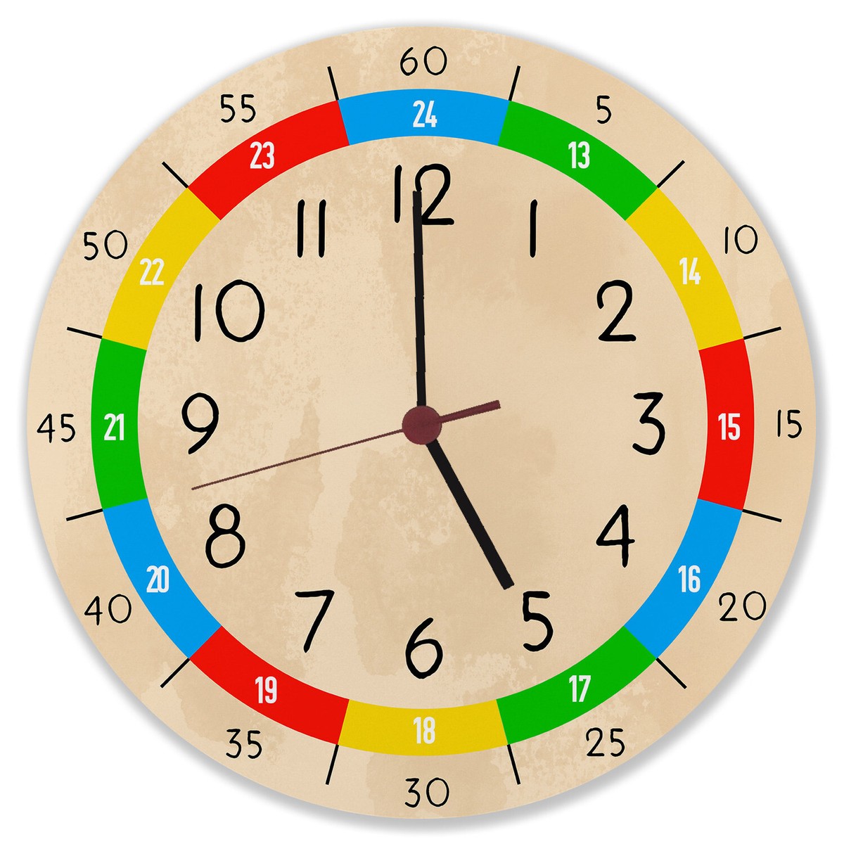 Aus robustem MDF-Material (3 mm Stärke) gefertigt und mit einer Schutzfolie versehen - so verblassen die Farben nicht und die Uhr ist leicht feucht abwischbar. Das Uhrwerk ist super leise, stört also nicht beim Schlafen.