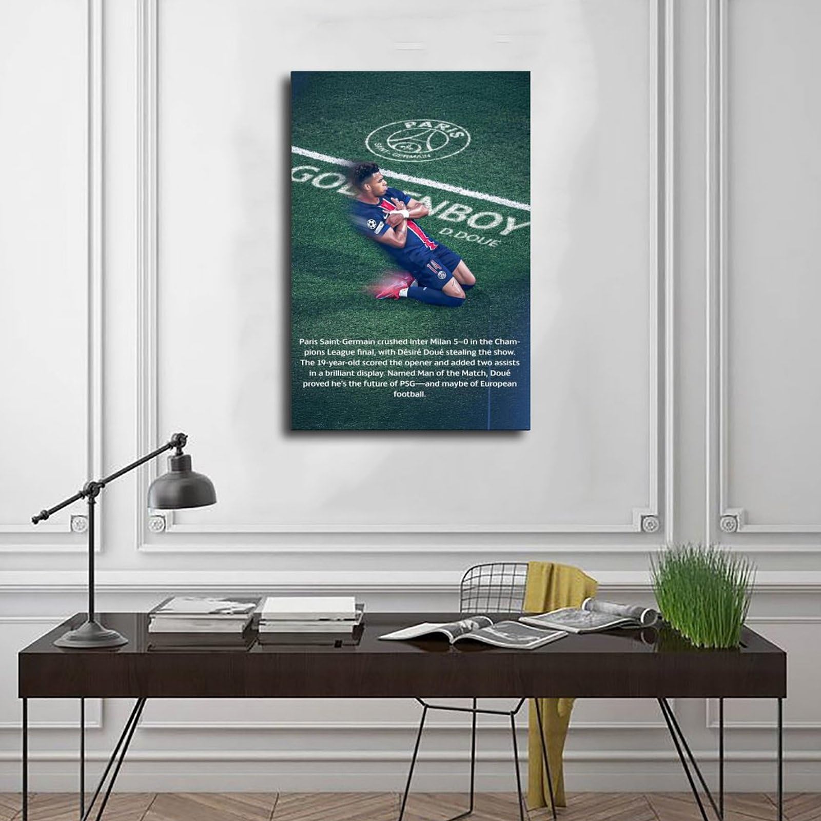 Für echte Fußball-Fans! Dieses coole Poster zeigt den World Star Desire Doue in top Qualität auf Leinwand. Ungerahmt und 30x45cm groß - perfekt für Jugendzimmer, Büro oder Fan-Keller. Hochauflösender Druck mit lebendigen Farben, die lange halten. Anders als billige Papierposter hat diese Leinwand richtig Klasse und bleibt auch nach Jahren noch schön. Wird frisch für dich produziert, nicht lange gelagert. Einfach an die Wand hängen und sofort ist Fußball-Stimmung im Raum! Ob als Geschenk für Kumpels oder zur eigenen Dekoration - damit zeigst du, wo dein Herz schlägt. Einfach stylisch und made for true fans!