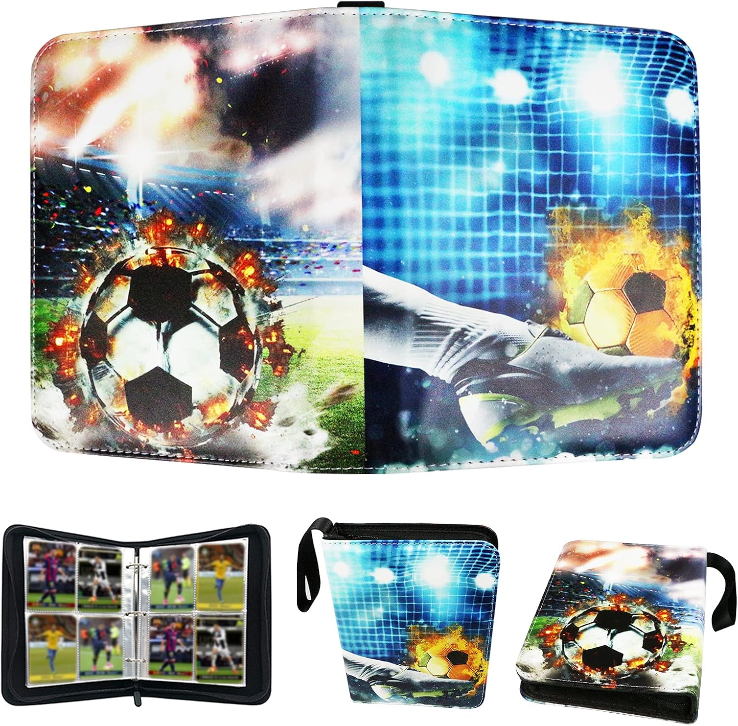Das coole: Der Reißverschluss schützt deine Karten vor Staub und Beschädigungen. Mit 22 x 16 cm ist das Album handlich, aber trotzdem groß genug für Standard-Karten. In schwarz mit Fußball-Motiv sieht es dazu noch richtig stylisch aus.