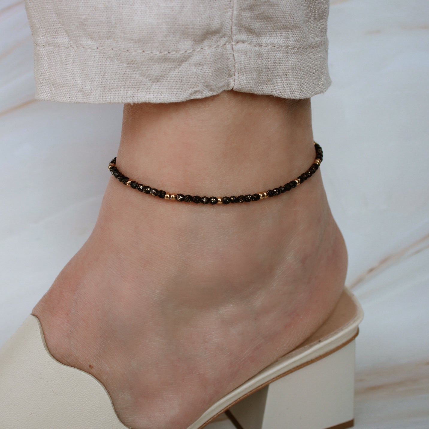 Total süße Fußkettchen für den Sommer! Dieses 3-teilige Set in Gold und Weiß ist einfach perfekt für Strand, Pool oder Festival. Mit echten Bohemian-Vibes und funkelnden Akzenten. Aus hochwertiger Zinklegierung und Kunststoff - leicht, langlebig und hautverträglich. Die elastischen Bänder (6,5cm und 8,5cm Durchmesser, 26cm Gesamtlänge) passen sich jedem Knöchel an. Kannst du einzeln tragen oder kombinieren - super flexibel! Sieht mega aus mit Sandalen, Flip-Flops oder barfuß. Einfach anziehen und den Sommer genießen! Perfekter Schmuck für alle, die es lässig und stylisch mögen. Damit wirst du überall auffallen!