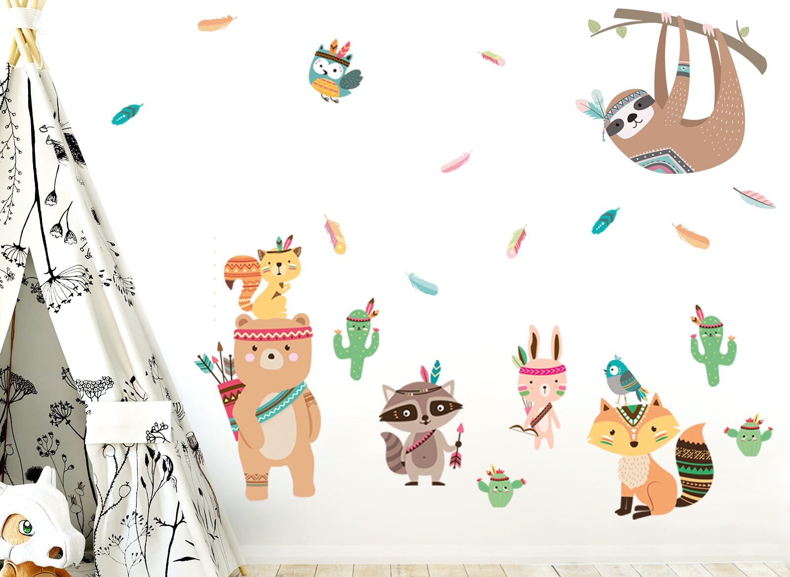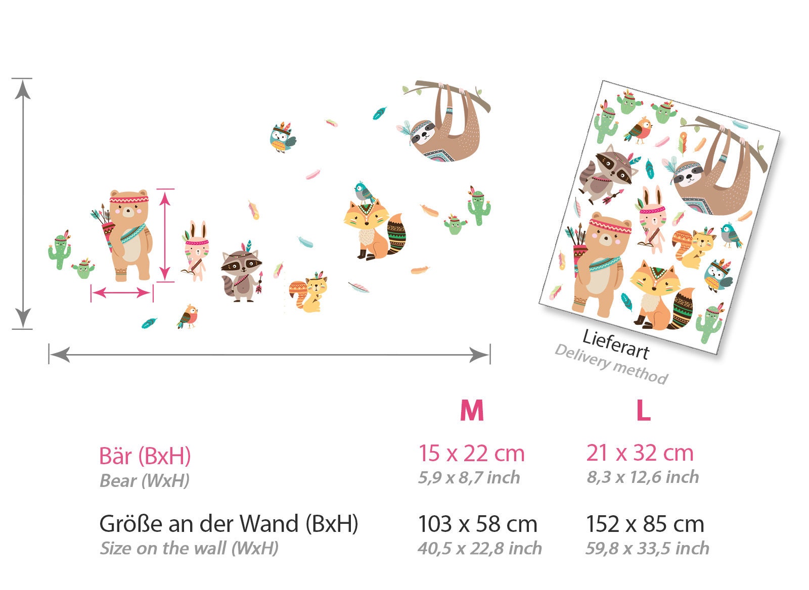 Wandtattoo Waldtiere - 89x54cm Fuchs Hirsch Eule - Kinderzimmer Deko - Made In Germany