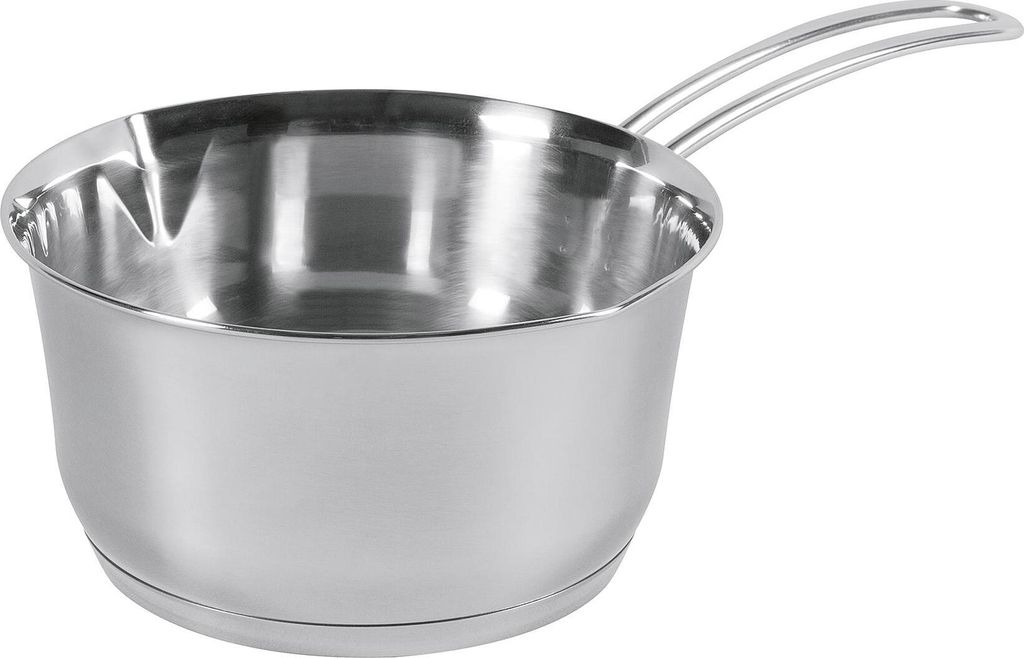 Kochst du auch gerne mal kleinere Portionen? Dann ist diese süße Stielkasserolle genau das Richtige für dich! Mit 14cm Durchmesser ist sie perfekt für Soßen, Eierspeisen oder einfach nur zum Erwärmen von Milch. Aus robustem 18/10 Edelstahl gefertigt, hält sie ewig und geht garantiert nicht kaputt.\\n\\nDer praktische Ausgießer auf beiden Seiten sorgt dafür, dass nichts daneben geht - super praktisch, wenn du Soßen oder flüssige Teige abgießen willst. Und der geschweißte Griff liegt nicht nur gut in der Hand, sondern ist auch noch hitzebeständig!\\n\\nDas Beste: Die Kasserolle funktioniert auf ALLEN Herdarten - inklusive Induktion! Du kannst sie sogar bis 200°C im Ofen verwenden. Ob für die Studentenbude, als Zweitpfanne in der Familienküche oder für unterwegs - dieser kleine Allrounder sollte in keiner Küche fehlen. Einfach abwaschen und schon glänzt sie wieder wie neu!