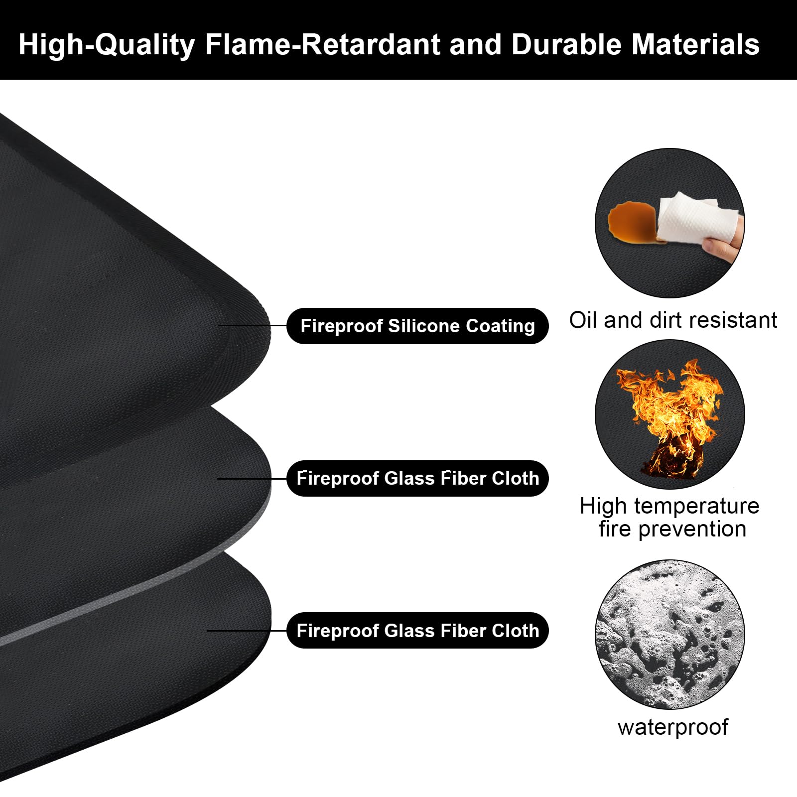 Sicherheit geht vor! Diese Funkenschutzplatte schützt deinen Boden vor Funken und Hitze. 100x50 cm groß, halbrundes Design. Aus doppelseitigem Fiberglas mit Silikonbeschichtung - hält richtig was aus! Rutschfeste Unterseite, bleibt sicher liegen. Leicht zu reinigen - einfach abspritzen oder abwischen. Perfekt für Kamine, Öfen, Grills und Feuerstellen. Auch super für Camping oder Garten. 500 g Gewicht - robust aber handlich. Damit kannst du beruhigt heizen und grillen, ohne Angst vor Brandflecken auf deinem teuren Bodenbelag!