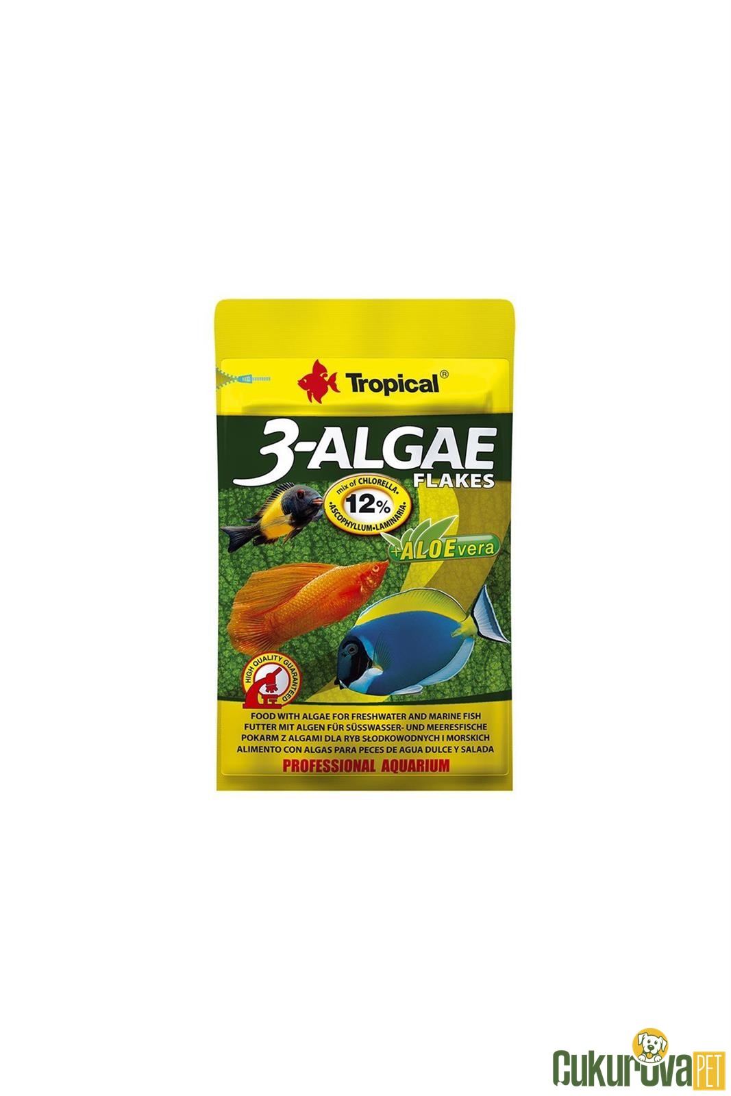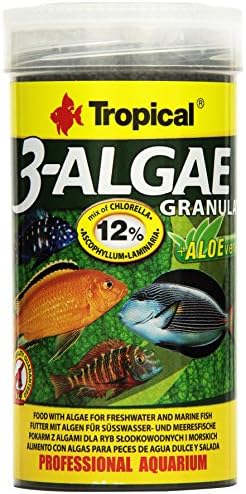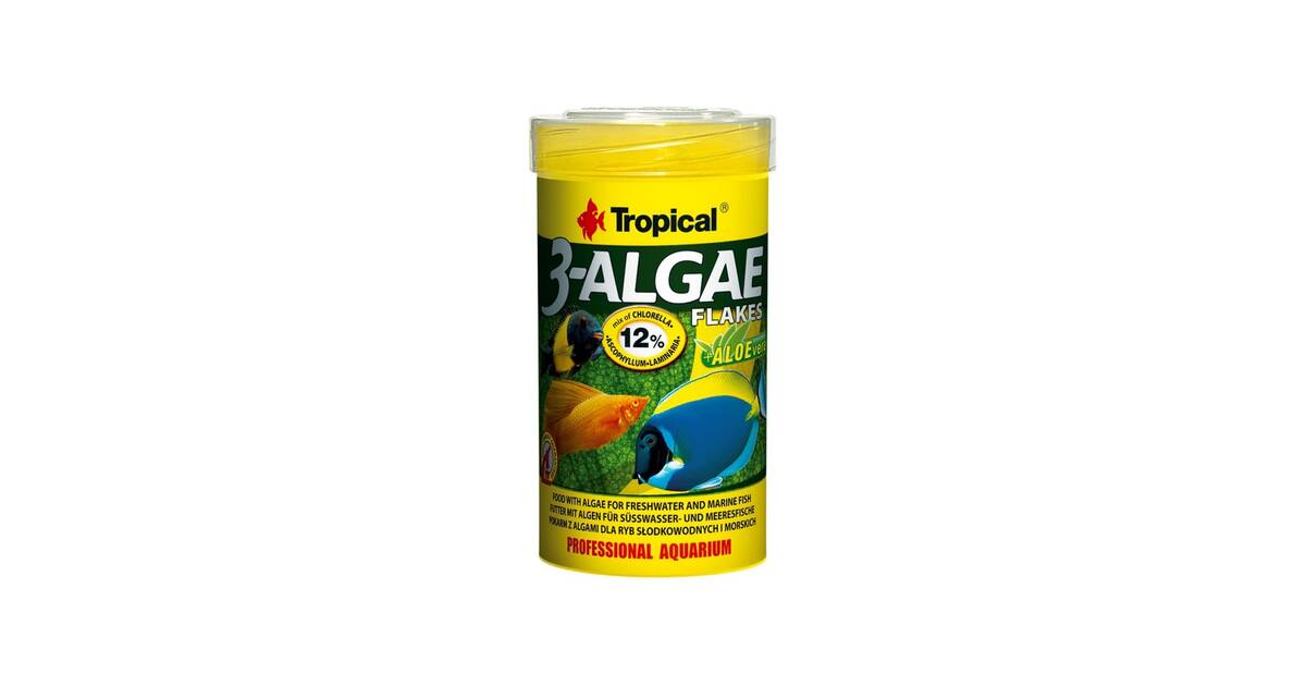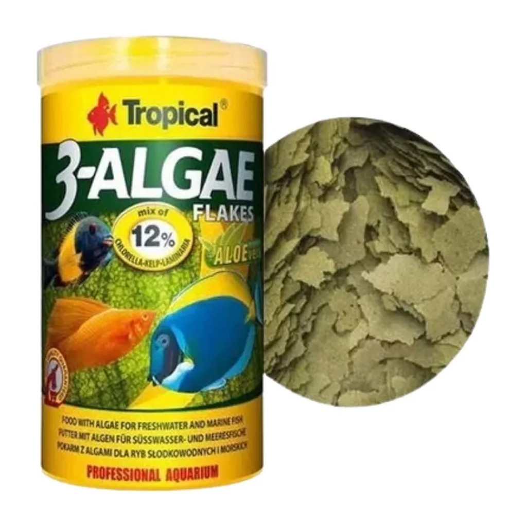 Bestes Futter für pflanzenfressende Fische! Diese Tropical 3-Algae Flocken enthalten drei Algensorten: Chlorella, Ascophyllum und Laminaria. Reich an ungesättigten Fettsäuren, Proteinen und Vitaminen. Chlorophyll hemmt schädliche Bakterien, Zeolith entgiftet. Mit Aloe-Extrakt für bessere Immunität. Ideal für Süßwasser- und Meeresfische. Mehrmals täglich kleine Portionen füttern. Auch für kranke oder gestresste Fische perfekt. 1 Liter Packung reicht lange. Deine Fische werden's lieben!