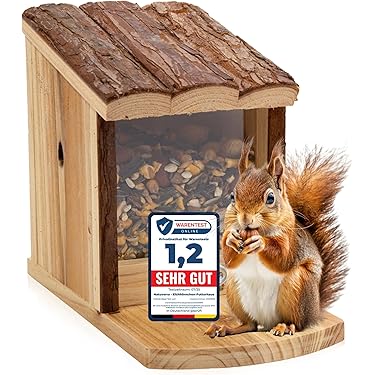 Eichhörnchen Futterhaus Mit Rundem Fenster - Wetterfest Für Garten & Balkon