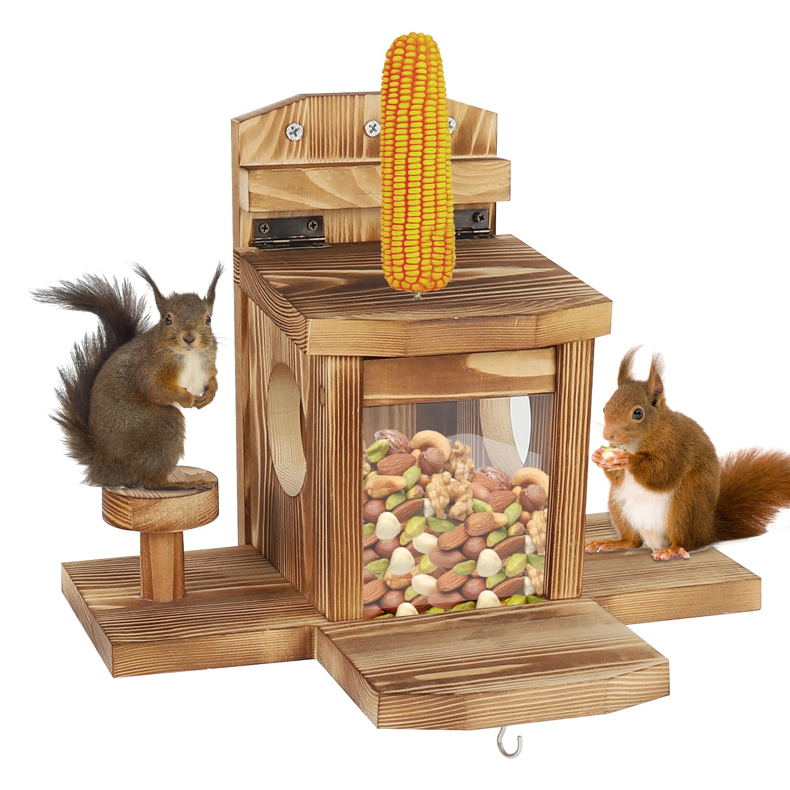 Beobachte niedliche Eichhörnchen aus nächster Nähe! Diese hübsche Futterstation aus Holz ist 33x17x23cm groß und bietet Platz für mehrere Tiere gleichzeitig. Einfach an Bäumen, Wänden oder Zäunen zu montieren. Das wetterfeste Holz hält jeder Witterung stand. Perfekte Garten-Deko und ein tolles Erlebnis für die ganze Familie. Sieh zu, wie die Eichhörnchen leckeres Futter genießen! Ideal als Geschenk für Tierfreunde. Einfach aufhängen, befüllen und sich über die possierlichen Besucher freuen!