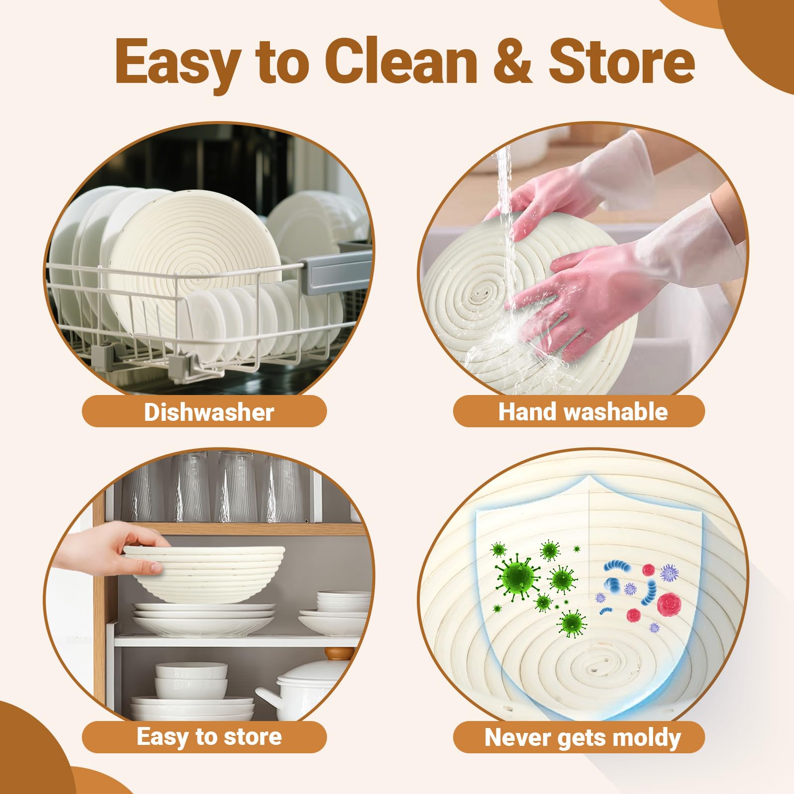 Jetzt Brotback-Profi werden! Dieses komplette 8-teilige Set hat alles, was du brauchst: 2 Gärkörbe (23cm rund & 25cm oval) mit Leineneinsätzen, Sauerteig-Gärglas, Teigschaber, dänischer Schneebesen, Bäckermesser und Reinigungsbürste. Die Gärkörbe sind handgefertigt, atmungsaktiv und geben deinem Brot die perfekte Form. Alles leicht zu reinigen, spülmaschinenfest. Ideal für Sauerteigbrot, Vollkornbrot und Baguettes. Auch super als Geschenk für Back-Begeisterte!