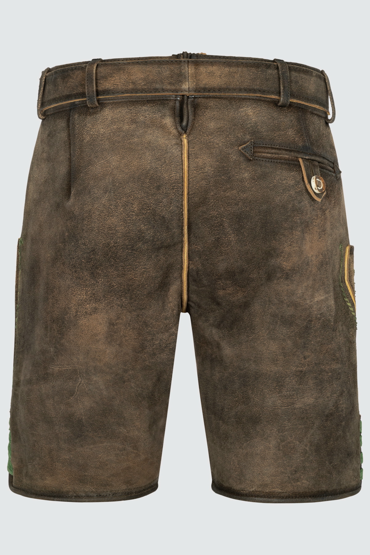 Servus! Die Krüger Lederhose Larry ist dein Ticket zum perfekten Trachten-Outfit. Diese kurze Lederhose im modernen Design überzeugt mit aufwendigen Stickereien und traditionellen Knopf-Verschlüssen.