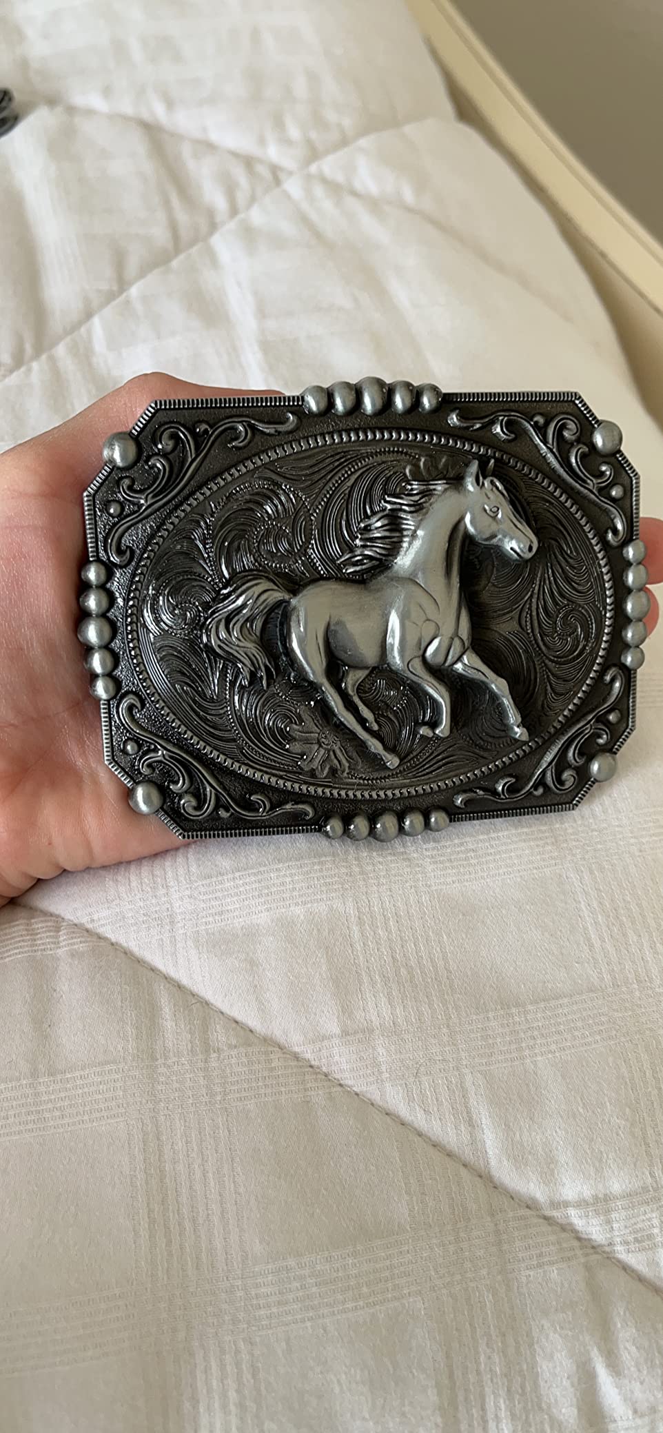 Echte Western-Vibes mit dieser coolen Adler-Gürtelschnalle! Das detailreiche Design mit dem fliegenden Adler ist einfach der Hammer und zeigt deine Persönlichkeit. Aus hochglanzpolierter Zinklegierung - robust und langlebig, verblasst nicht. Mit 11,5 x 9 cm die perfekte Größe für jeden Gürtel. Passt zu vielen Anlässen: Büro, Schule, Partys oder Cosplay. Ein super Geschenk für Weihnachten, Geburtstage oder Vatertag - für jeden, der Western-Style liebt!