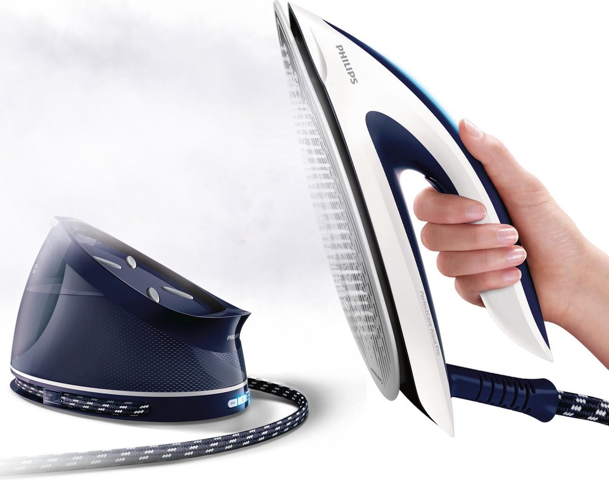 Bügeln war noch nie so einfach! Die Philips PerfectCare Aqua Pro Dampfbügelstation nimmt dir wirklich alle Arbeit ab. Mit stolzen 6,5 bar Dampfdruck glättet sie selbst die hartnäckigsten Falten im Nu. Der riesige 2,5 Liter Wassertank reicht für bis zu 3 Stunden Bügelmarathon - du musst also nicht ständig nachfüllen.\n\nDas geniale an dieser Station: Die OptimalTEMP-Technologie! Du musst keine Temperatur mehr einstellen - einfach drauflosbügeln von Jeans über Seide bis Hemden. Keine Sorge vor Brandflecken, die Technologie verhindert das komplett. Und das Bügeleisen selbst ist superleicht mit nur 0,8 kg - deine Handgelenke werden's dir danken.\n\nIn nur 2 Minuten ist die Station einsatzbereit und du kannst loslegen. Besonders praktisch: Du kannst das heiße Bügeleisen einfach auf der Kleidung oder Bügelbrettabdeckung abstellen - total sicher und bequem. Die Fünf-Sterne-Eisensohle gleitet wie von selbst über die Stoffe.\n\nOb für den großen Wäscheberg oder zwischendurch - diese Dampfbügelstation macht Bügeln wirklich angenehm. Der weiche Griff liegt perfekt in der Hand, und die automatische Abschaltung gibt dir zusätzliche Sicherheit. Ein echter Game-Changer für jeden Haushalt!