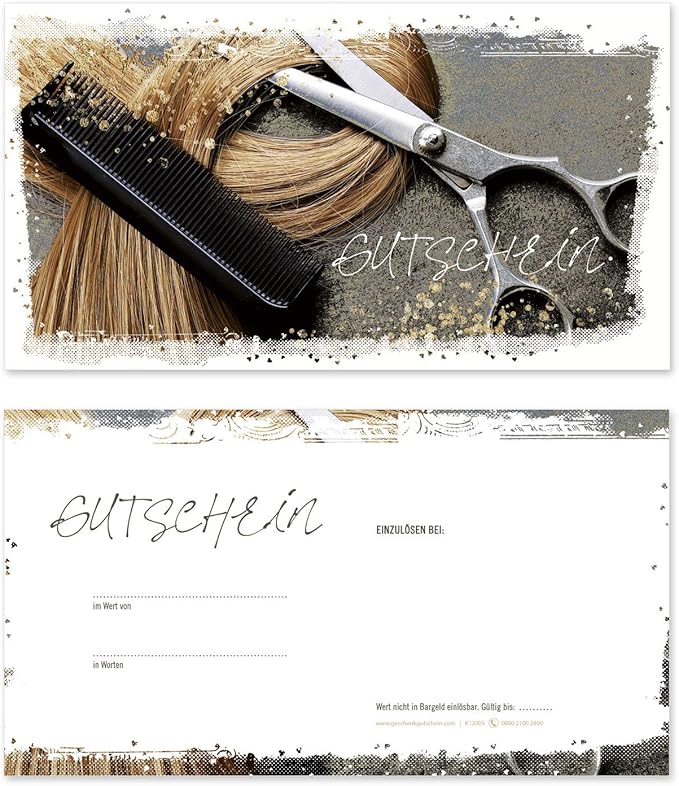 GESCHENKGUTSCHEINcom - 25 Blanko Gutscheine Für Friseur & Unternehmen Mit Elegantem Design