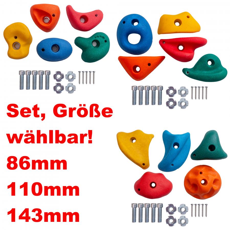 Klettern macht jetzt noch mehr Spaß! Dieses GO!elements Klettergriffe-Set verwandelt jede Wand in einen Abenteuerspielplatz. Enthalten sind je nach Variante 15, 20, 25 oder 30 bunte Griffe in fünf Farben (rot, orange, gelb, blau, grün) und drei verschiedenen Größen - perfekt für Kinder von 3-13 Jahren. Alle Griffe haben abgerundete Kanten und strukturierte Oberflächen für sicheren Halt. Das komplette Befestigungsmaterial ist dabei: verzinkte M8x40 Schrauben, Unterlegscheiben und Einschlagmuttern für Holz. Einfach an Spielturm, Kletterwand, Klettergerüst oder sogar am Hochbett befestigen - ob drinnen oder draußen! Die Griffe sind UV-beständig, wetterfest und leicht zu reinigen. SGS-zertifiziert und schadstoffgeprüft, also absolut sicher für deine Kinder. Fördern Kraft, Gleichgewicht und Koordination - und machen einfach irre viel Spaß!