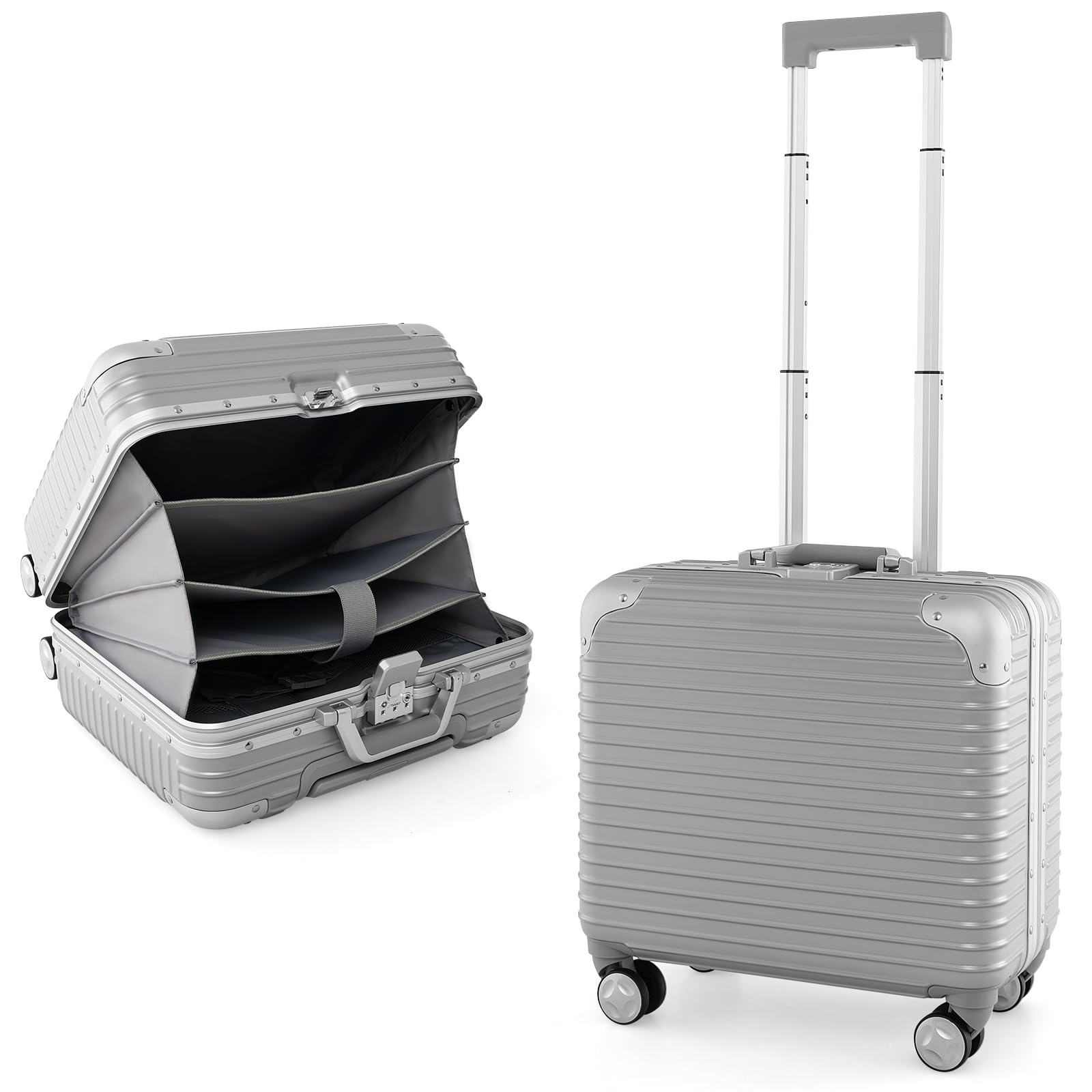 Dein idealer Begleiter für jede Reise! Der GOPLUS 20-Zoll-Kabinenkoffer in stylischem Marineblau bietet alles, was du brauchst: 40 Liter Stauraum, die sich bei Bedarf um 5 Liter erweitern lassen – perfekt für Last-Minute-Souvenirs. Das integrierte Laptopfach in der Vordertasche schützt deine Technik, und das TSA-Schloss sorgt für Sicherheit an Flughäfen. Mit USB- und Typ-C-Anschluss kannst du unterwegs entspannt deine Geräte aufladen – einfach Powerbank ins Innere packen und losgeht's! Die vier doppelten, schwenkbaren Rollen machen das Manövrieren zum Kinderspiel, und der stabile Teleskopgriff aus Aluminium lässt sich auf vier Höhen anpassen. Hergestellt aus stoßfestem PC-Material, das Kratzer und Stöße abfedert. Mit nur 3,5 kg Leergewicht bleibt dir mehr Platz für deine Reiseschätze. Ob Städtetrip oder Business-Reise – dieser Koffer ist dein zuverlässiger Partner für entspanntes Reisen. Einfach packen, abschließen und die Welt entdecken!