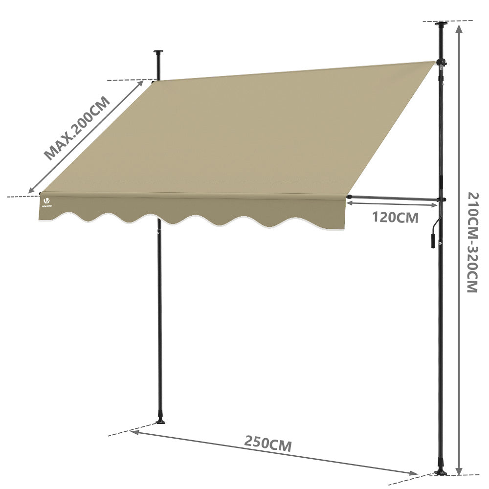 GOPLUS Klemmmarkise 300cm - Balkon Markise Ohne Bohren Mit Handkurbel
