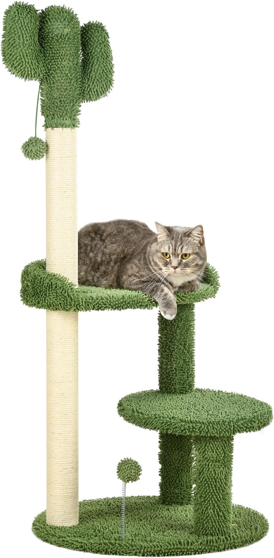 Das Paradies für deine Samtpfote! Dieser 148cm hohe Kratzbaum in süßer Pilzform bietet deiner Katze alles, was ihr Herz begehrt: Kratzmöglichkeiten, Schlafplätze und Spielspaß in einem.\\n\\nAUSSTATTUNG IM ÜBERBLICK:\\n• 148cm Höhe für perfekte Aussicht\\n• 2 gemütliche Höhlen zum Verstecken\\n• Rasenartige Plattform zum Ausruhen\\n• Robuste Sisal-Kratzpfosten\\n• Abnehmbare, waschbare Kissen\\n\\nFÜR DEINE KATZE:\\n• Natürliches Kratzen an Sisal\\n• Kuschelige Schlafplätze\\n• Geheimversteck auf der Rückseite\\n• Hängender Ball zum Spielen\\n• Verschiedene Ebenen zum Klettern\\n\\nMATERIALIEN:\\n• Massivholz für Stabilität\\n• Weicher Plüschbezug\\n• Natur-Sisal für Krallenpflege\\n• Stabile Basis gegen Umkippen\\n• Für Katzen bis 15kg pro Ebene\\n\\nWARUM DIESER KRATZBAUM?\\n• Schützt deine Möbel vor Krallen\\n• Fördert natürliches Kratzverhalten\\n• Bietet Rückzugsmöglichkeiten\\n• Stabil und kippsicher\\n• Leicht zu reinigen\\n\\nDeine Katze wird diesen Kratzbaum lieben! Die verschiedenen Ebenen laden zum Klettern ein, die Höhlen bieten gemütliche Verstecke und die Sisalpfosten sind perfekt für die tägliche Krallenpflege. Die süße Pilzform macht sich dazu noch toll in deiner Wohnung. Einfach aufbauen und zusehen, wie deine Katze ihr neues Reich erobert!