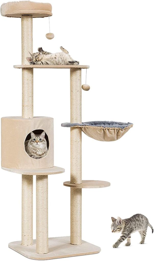 GOPLUS Kratzbaum 148cm Pilzform - Mit 2 Höhlen & Sisalpfosten Für Katzen