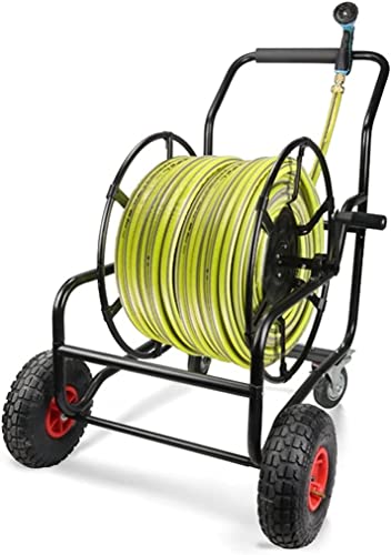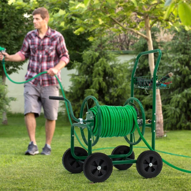 Endlich Ordnung im Garten! Dieser Schlauchwagen aus Metall ist ein echter Game-Changer. Maße: 76x55x92 cm - robust und stabil. Passt für 70 m Schlauch mit 20 mm Durchmesser oder 90 m mit 15 mm (Schlauch nicht inklusive). Mit praktischer Kurbel - einfach drehen und der Schlauch rollt sich sauber auf. Die großen Räder (25 cm Durchmesser) machen das Bewegen super einfach, auch auf unebenem Boden. Der Griff ist mit Schaumstoff überzogen - bequem in der Hand. Hinten ist ein Aufbewahrungskorb für Gartengeräte. Aus Metall mit Messing- und verzinkten Teilen - rostfrei und langlebig. Perfekt zum Bewässern, Autowaschen oder Haustierbaden. Einfach den Schlauch einrollen und der Garten sieht sofort aufgeräumter aus!