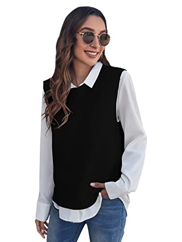 GORGLITTER Damen Pullunder Gestreift - Ärmellose Strickweste Rundhals