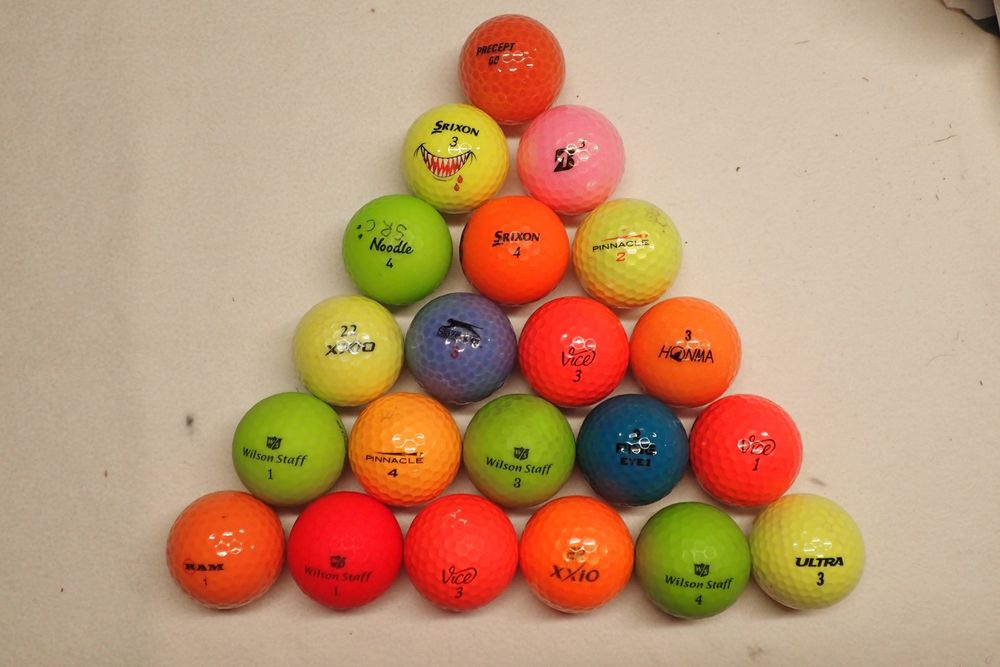 Total coole Golfbälle in 8 knalligen Farben! Jeder Ball 42,6mm groß und 45g schwer - also offizielle Größe, aber speziell fürs Training. Aus synthetischem Gummi und Surlyn, mit zweischichtiger Konstruktion für gute Elastizität und Haltbarkeit. In dunkelblau, orange, grün, rot, pink, gelb, lila und hellblau - die siehst du in jedem Gelände! Perfekt für Putting-Übungen im Garten, Wohnzimmer oder auf dem Golfplatz. Super für Anfänger zum Üben, aber auch erfahrene Golfer nutzen sie gerne fürs Training. Macht das Üben viel spaßiger als mit weißen Bällen. Auch ein lustiges Geschenk für Golf-Fans oder um Kinder an den Sport heranzuführen. Einfach mitnehmen und überall üben - ob im Park, im Garten oder sogar im Haus!