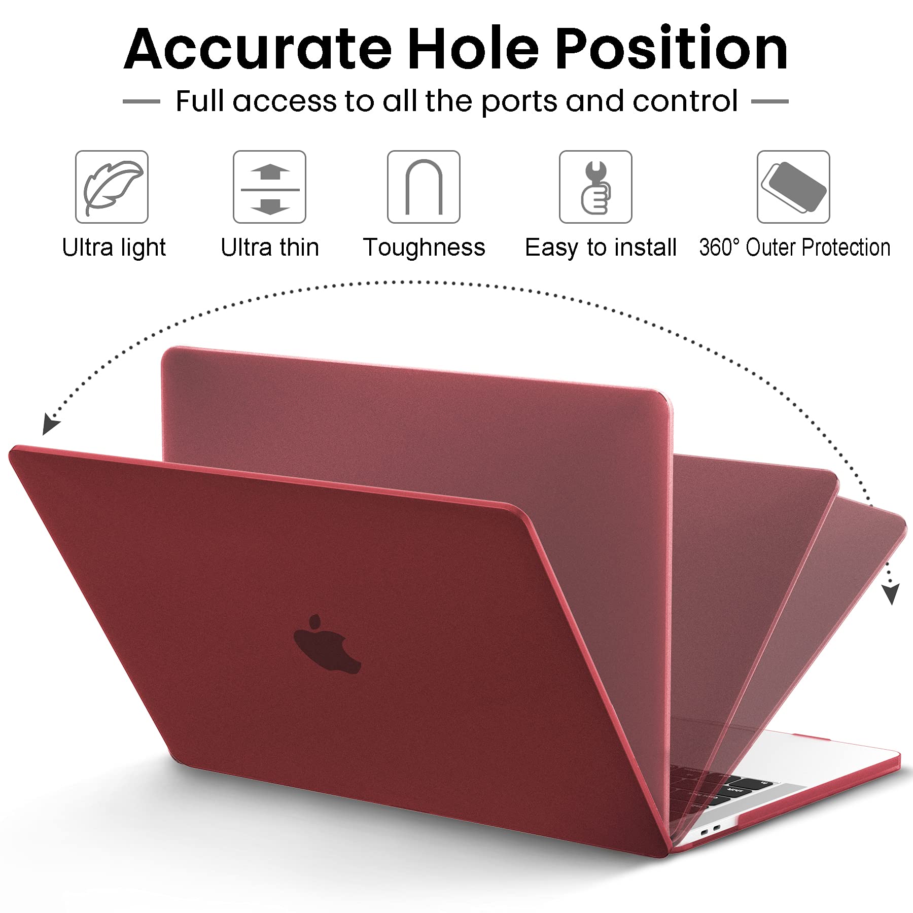 Die Hülle beeinträchtigt nicht die Funktion deines MacBooks - du kannst alle Ports, Tasten und Features uneingeschränkt nutzen. Ein Must-Have für jeden MacBook-Besitzer, der sein Gerät in Top-Zustand halten möchte!