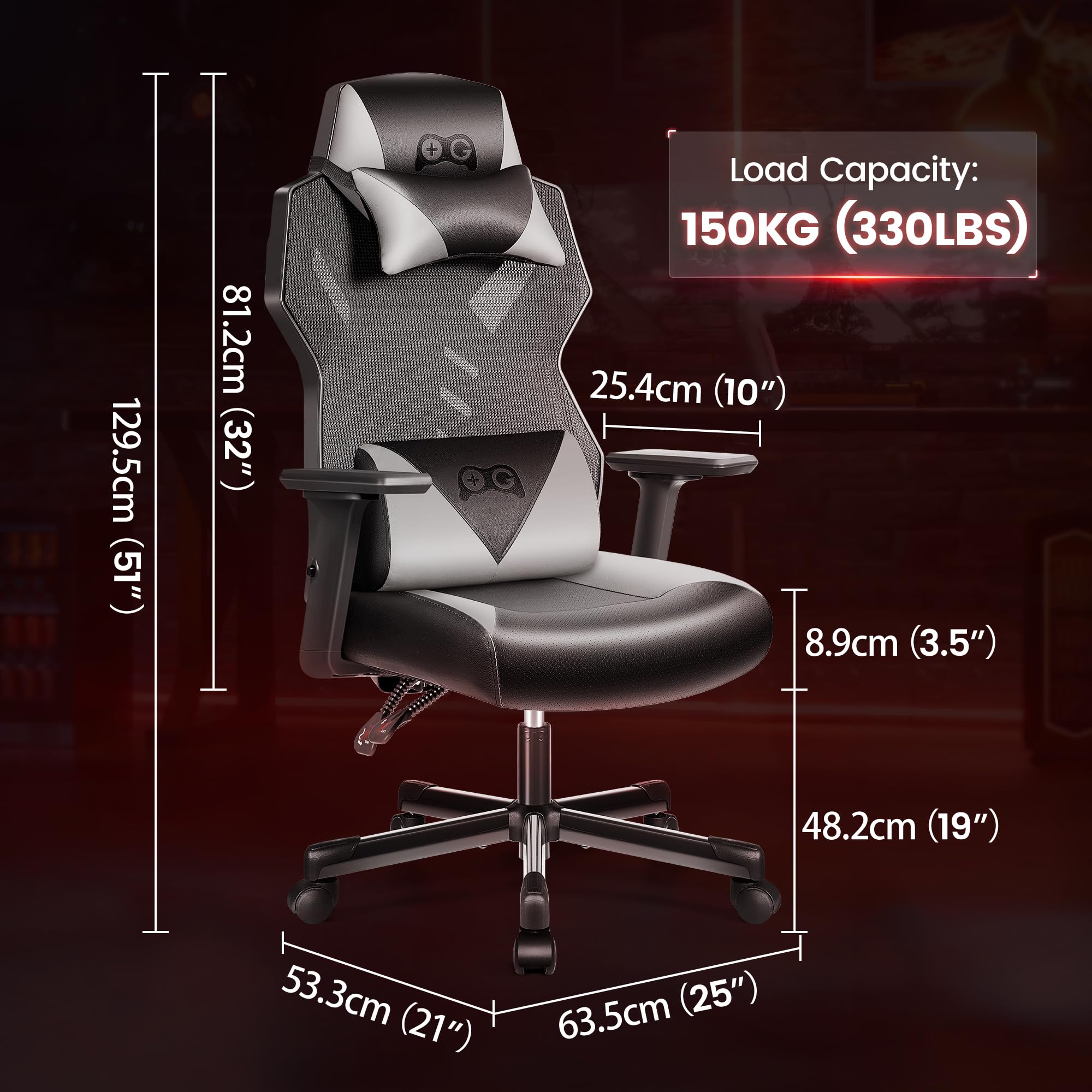 Endlich durchsitzen ohne Rückenschmerzen! Der DoChair Gaming Stuhl ist dein bester Freund für lange Gaming-Sessions. Mit extra weicher High-Density-Schaumstofffüllung und atmungsaktivem Mesh-Rücken - da bleibt kein schwitziger Rücken mehr! Die 3D-Armlehnen sind in alle Richtungen verstellbar, die Rückenlehne neigt sich von 90° bis 135°. Super stabil mit Metall-Fünffüßler und geprüftem Gaslift. Hält bis zu 200kg aus! Und falls mal was sein sollte: 1 Jahr Garantie inklusive. Perfekt für Zocker, Homeoffice-Arbeiter und alle, die es bequem mögen!