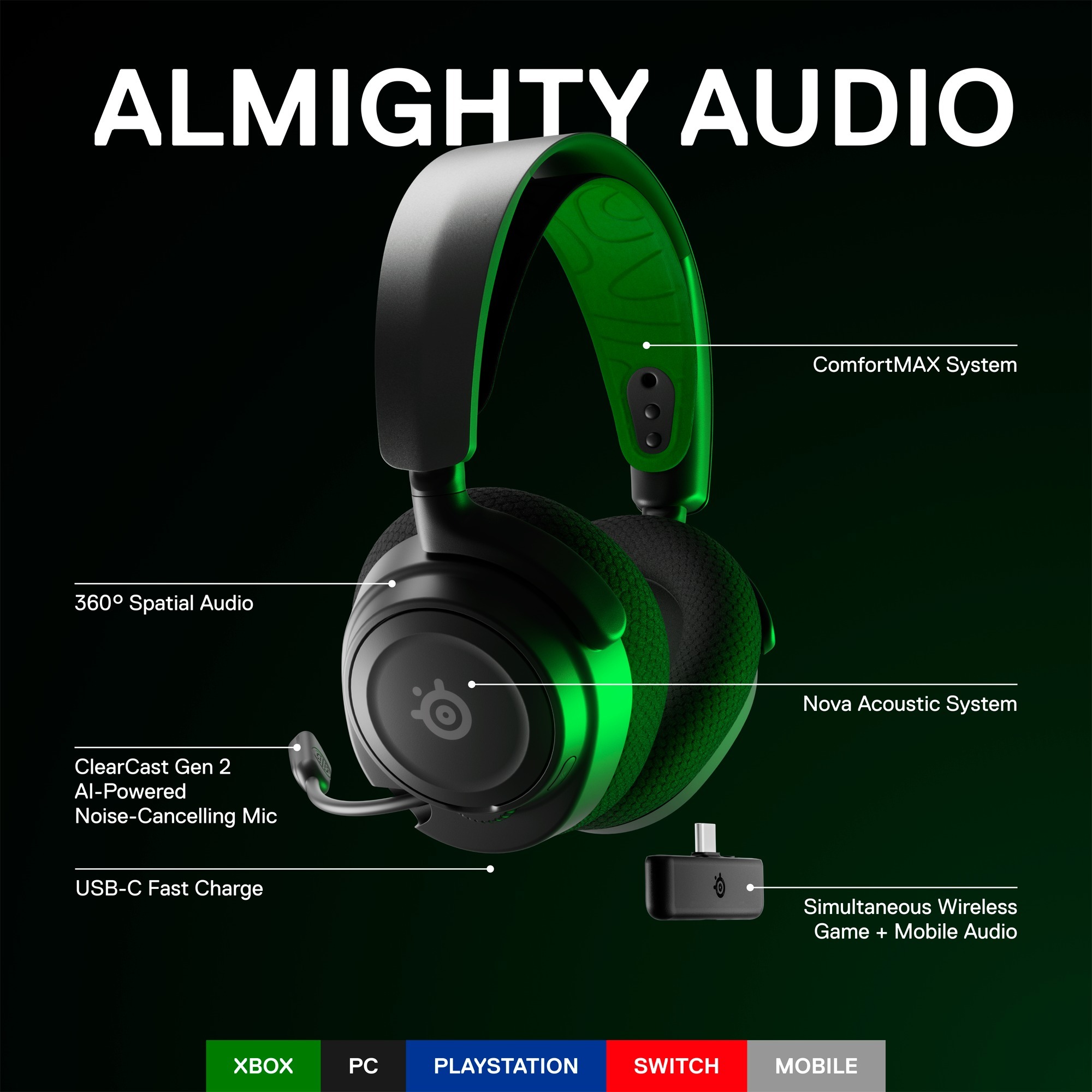 SteelSeries Arctis Nova Elite Wireless Gaming Headset - Hi-Res Audio 96kHz, ANC & KI-Geräuschunterdrückung