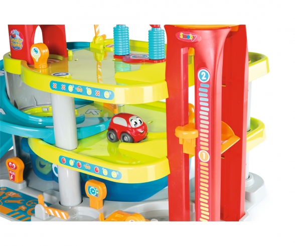 Abwechslungsreicher Spielspaß für die Kleinen! Diese niedliche kleine Garage von Smoby bringt Action ins Kinderzimmer. Mit integrierter Auto-Plattform und praktischer Waschanlage - hier gibt's immer was zu tun! Der coole Mini-Flitzer Abschleppwagen 'Hook' ist natürlich im Lieferumfang enthalten. Besonders praktisch: Die robuste Verarbeitung und die patentierten Rad-Achsenverbindungen machen das Spielzeug schon für Kleinkinder geeignet. So lernen die Kleinen spielerisch erste Verkehrsregeln und entwickeln ihre motorischen Fähigkeiten. Die bunten Farben wecken die Neugier und laden zum stundenlangen Spielen ein. Perfekt für Kinder, die Autos und alles, was damit zu tun hat, lieben! Einfach aufbauen und schon kann die Spielzeugauto-Parade beginnen! Das kompakte Design passt in jedes Kinderzimmer und sorgt für unterhaltsame Nachmittage. Ein tolles Geschenk für kleine Rennfahrer und solche, die es werden wollen!