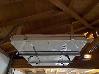 Platzproblem in der Garage? Dieser Deckenlift ist die Lösung! Bis zu 30kg trägt er sicher - deine Dachbox, Fahrräder, Kanus oder andere sperrige Sachen. Einfaches Flaschenzugsystem - zieh am Seil und schon schwebt dein Zeug zur Decke. Spart mega Platz und hält die Garage ordentlich. Mit Schließsystem für zusätzliche Sicherheit. Einfach an der Decke montieren (Montageanleitung dabei) und schon kannst du losschweben lassen. Perfekt für alle, die ihre Garage optimal nutzen wollen. Nie wieder über Dachboxen oder Fahrräder stolpern! Deine Garage wird endlich aufgeräumt und du gewinnst wertvollen Stellplatz. Einfach genial - warum bin ich nicht früher drauf gekommen?