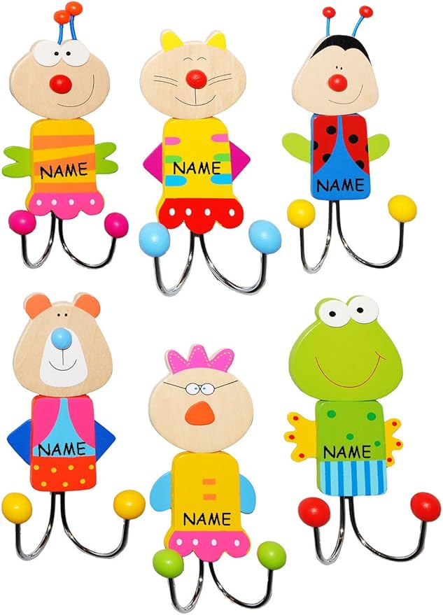 Wow, wie süß! Diese niedlichen Tier-Garderobenhaken aus Holz bringen Farbe und Spaß in jedes Kinderzimmer. Ob Marienkäfer, Igel, Ente, Vogel oder Blume - jedes Motiv ist ein echter Hingucker! Aus stabilem Holz gefertigt und mit coolen 3D-Effekten, die die Tiere richtig lebendig wirken lassen. Mit ca. 8,3 cm Breite und 10,5 cm Höhe perfekt für kleine Hände. Einfach an einen Nagel hängen - schon ist die Garderobe fertig! Super praktisch: Die Motive werden bunt gemischt geliefert, wenn du mehrere bestellst, wird's richtig bunt. Übrigens: Du kannst die Haken auch persönlich gestalten lassen - einfach den Wunschnamen dazu bestellen! Perfekt für Jacken, Taschen, Mützen oder Schals. Mach deinem Kind eine Freude mit diesen lustigen Garderobenhaken!