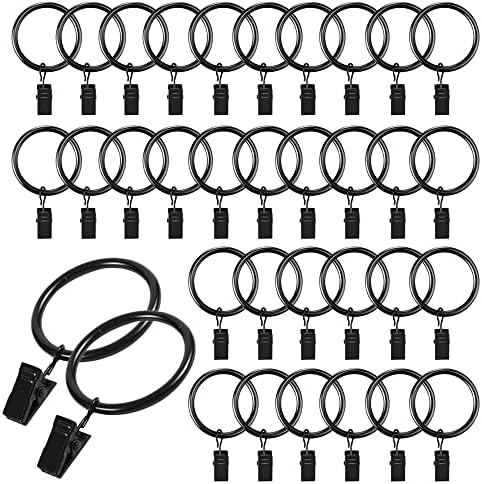 Caianwin 20 Stück Gardinenringe Mit Clips - Metall Vorhangringe 32mm Schwarz