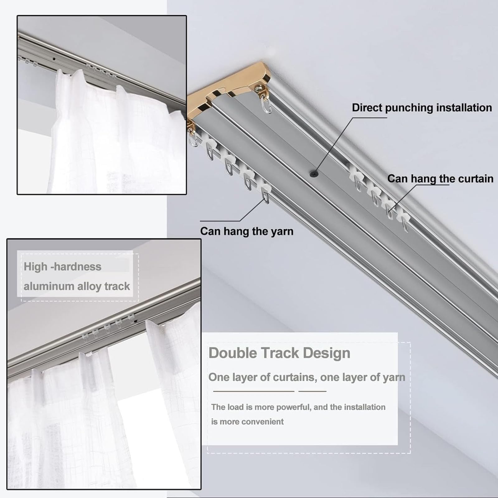 Gardinenstange Aluminium Gold - 2m Vorhangschiene Für Deckenmontage