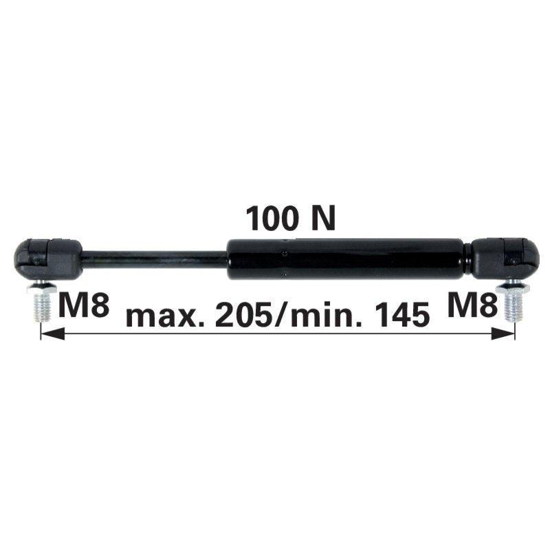 Schwere Klappen und Türen? Diese Gasdruckfeder macht's leicht! Mit 300N Tragkraft hilft sie beim Öffnen und Halten von LKW-Kappen, Reisemobil-Türen, Bootsluken und mehr. Aus dickem Stahlrohr mit QPQ-Nitrierbehandlung - rostfrei und extrem langlebig. Achsabstand 580mm, Hub 245mm für vielseitige Einsätze. Der Flachkopfstecker sitzt bombenfest und fällt nicht ab. Einfache Installation mit 8mm Bohrloch. Auch in 100N, 200N und 400N erhältlich. Perfekt für Werkstätten, Camping oder zu Hause. Verabschiede dich von schwerem Hantieren und begrüße müheloses Öffnen. Deine Arme werden dir danken - bestell jetzt diese robuste Stützstange!