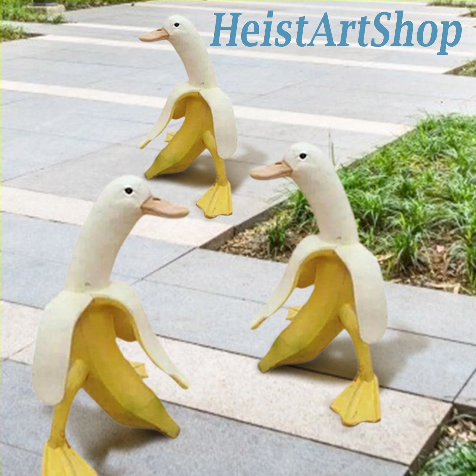 Diese verrückte Bananenente bringt Lustigkeit in deinen Garten! Wer hätte gedacht, dass eine geschälte Banane mit Entenkopf so charmant sein kann? Diese einzigartige Skulptur aus hochwertigem Harz ist ein absoluter Hingucker und sorgt garantiert für Gesprächsstoff.\\n\\nDie UV-beständige Farbe hält auch bei Regen und Sonne stand - perfekt für die Gartensaison. Die Bananenente sieht aus wie eine verwirrte Touristin, die sich in deinem Garten verirrt hat und jetzt fröhlich dort wohnt.\\n\\nTECHNISCHE DATEN:\\n• Material: Langlebiges Harz\\n• Größe: 20 x 15 cm (groß)\\n• Farbe: Gelb mit grünen Akzenten\\n• UV-beständige Beschichtung\\n\\nEINSATZBEREICHE:\\n• Vorgarten und Beete\\n• Terrasse und Balkon\\n• Blumenkübel und Rabatten\\n• Als Regal-Deko im Wohnzimmer\\n\\nDiese niedliche Skulptur verleiht deinem Außenbereich sofort eine fröhliche, künstlerische Note. Ob zwischen Blumen versteckt oder prominent auf der Terrasse platziert - die Bananenente bringt immer ein Lächeln ins Gesicht. Einfach hinstellen und über die verwirrten Blicke der Nachbarn freuen!