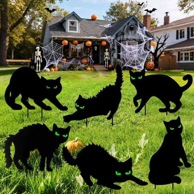 Mach deinen Garten zur gruseligen Halloween-Party! Dieses süße 6er-Set mit schwarzen Katzen in verschiedenen Posen bringt sofort Stimmung in deinen Außenbereich. Mit Hexenhut, Kürbis, Besen und sogar Flügeln - total abwechslungsreich und niedlich-gruselig zugleich. Die stabilen Ständer machen die Aufstellung super einfach: Einfach in den Rasen, ins Beet oder an den Hauseingang stecken, schon ist die Deko fertig! Aus robustem Kunststoff, der Regen und Wind problemlos standhält - du kannst die Figuren also Jahr für Jahr wiederverwenden. Perfekt für die Terrasse, Vorgarten oder als Eyecatcher bei deiner Halloween-Party. Kinder lieben die niedlichen Katzen, Erwachsene die mystische Atmosphäre. Einfach aufstellen und dich über staunende Gäste und Nachbarn freuen!