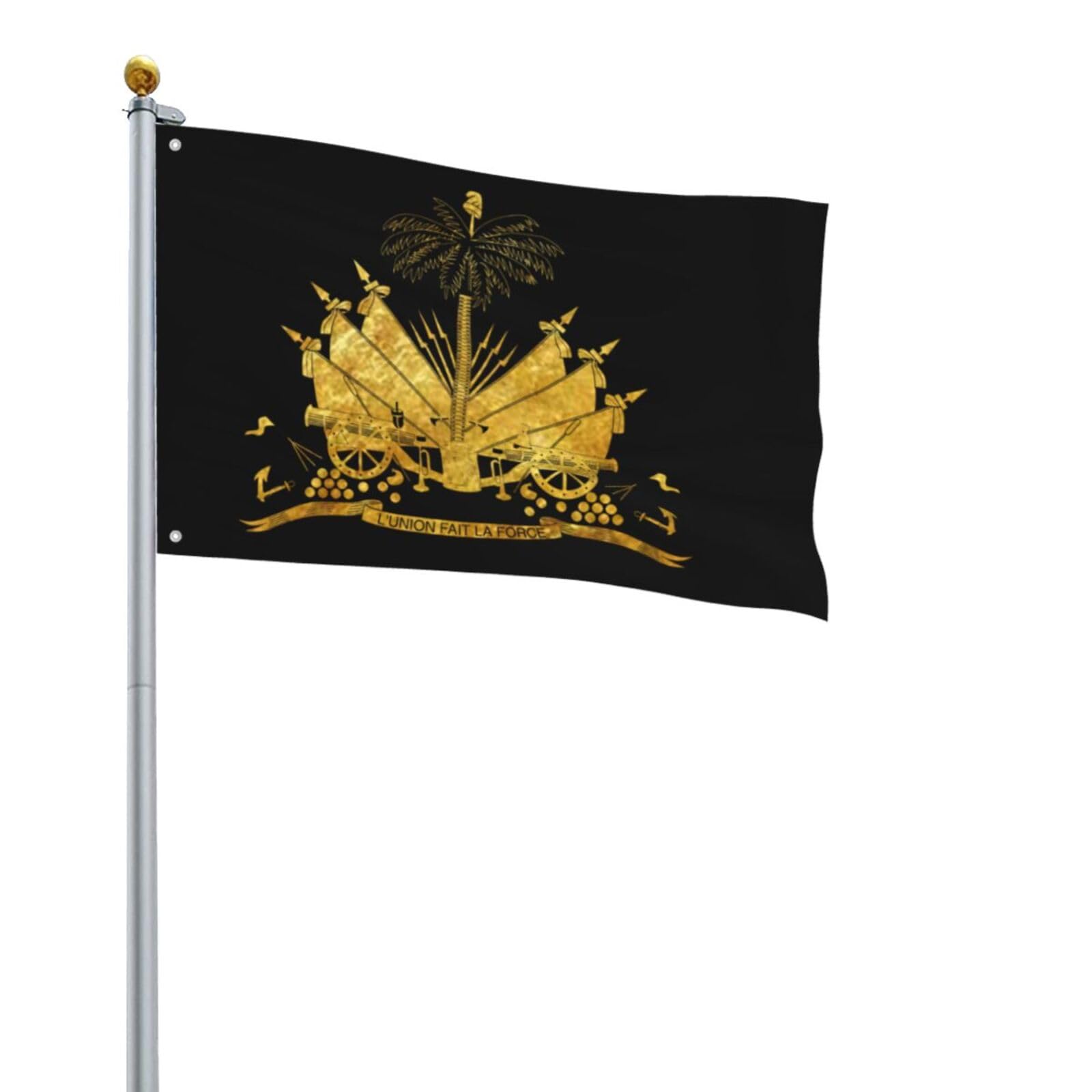 Zeige stolz deine Verbindung zu Haiti! Diese hochwertige Flagge aus 100% Polyester ist perfekt für Garten, Balkon oder Partys. Maße: 90x152cm - gut sichtbar aber nicht übergroß. Mit lebendigem einseitigem Druck, die Farben bleiben auch bei Sonneneinstrahlung lange kräftig. Zwei Metallösen auf der linken Seite machen das Aufhängen super einfach - an Fahnenmast, Seil oder Zaun. Das leichte Material flattert schön im Wind und trocknet nach Regen schnell. Ideal für Feiern, Camping, Sportevents oder einfach zur Dekoration. Auch innen an der Wand sieht sie toll aus. Die Flagge ist lichtbeständig und hält jahrelang ohne zu verblassen. Ein Muss für alle Haitianer und Freunde der karibischen Kultur. Fahnenmast nicht im Lieferumfang - aber mit den meisten Standard-Masten kompatibel. Mach dein Zuhause ein bisschen karibischer!