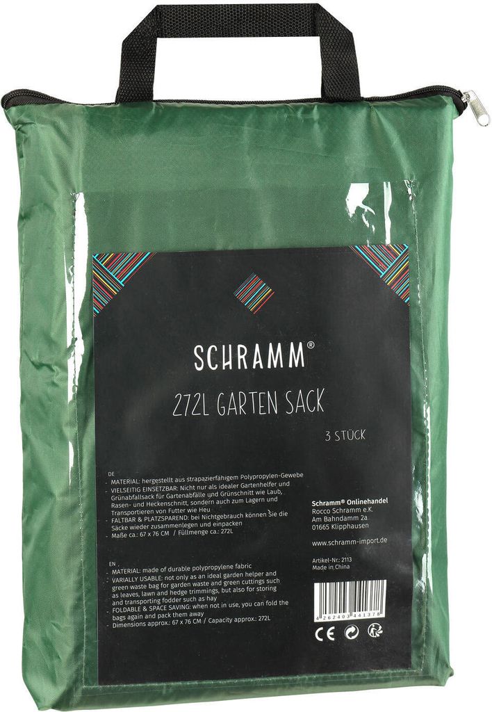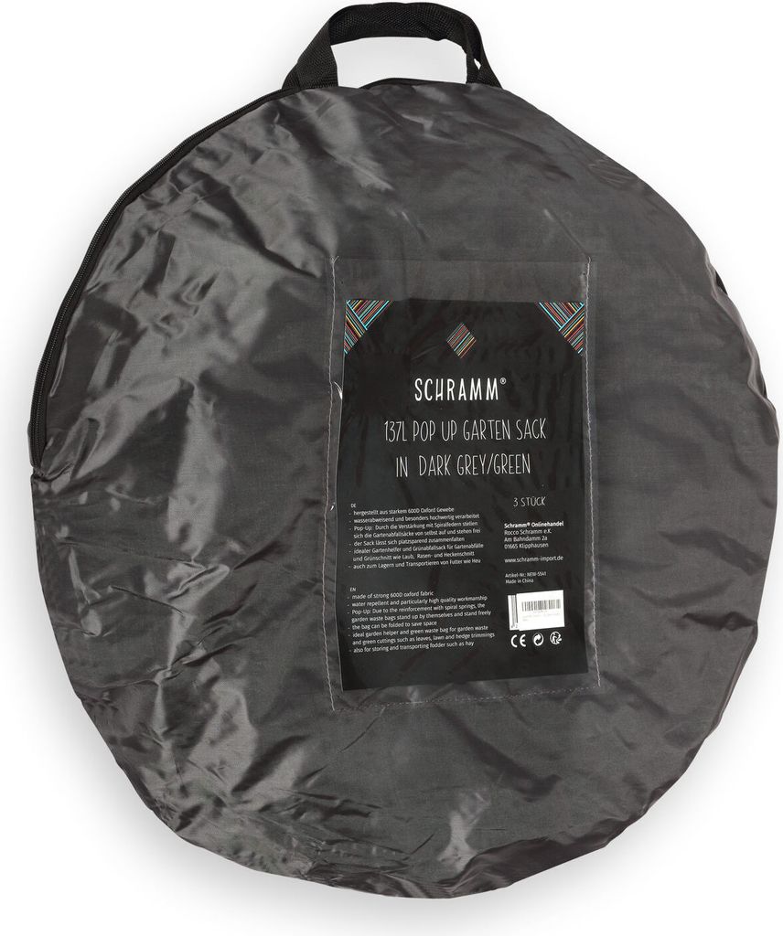 Gartenarbeit mal einfach! Diese genialen Pop-Up-Säcke von Schramm stellen sich von alleine auf - kein mühsames Aufstellen mehr! \\n\\n3er-Set mit je 280 Liter Fassungsvermögen - perfekt für große Gartenprojekte. Maße: 72x68cm - riesig aber platzsparend verstaut. \\n\\nAus extrem robustem Polyester mit wasserabweisender PE-Innenbeschichtung. Reißfest und UV-beständig - hält viele Jahre. \\n\\nPraktische Griffe oben zum Tragen und ein Entleerungsgriff unten. Ideal für Laub, Heckenschnitt, Rasenschnitt und andere Gartenabfälle. \\n\\nNach Gebrauch einfach zusammenfalten und platzsparend lagern. Mach Gartenarbeit zum Kinderspiel - einfach aufstellen, befüllen und wegräumen!